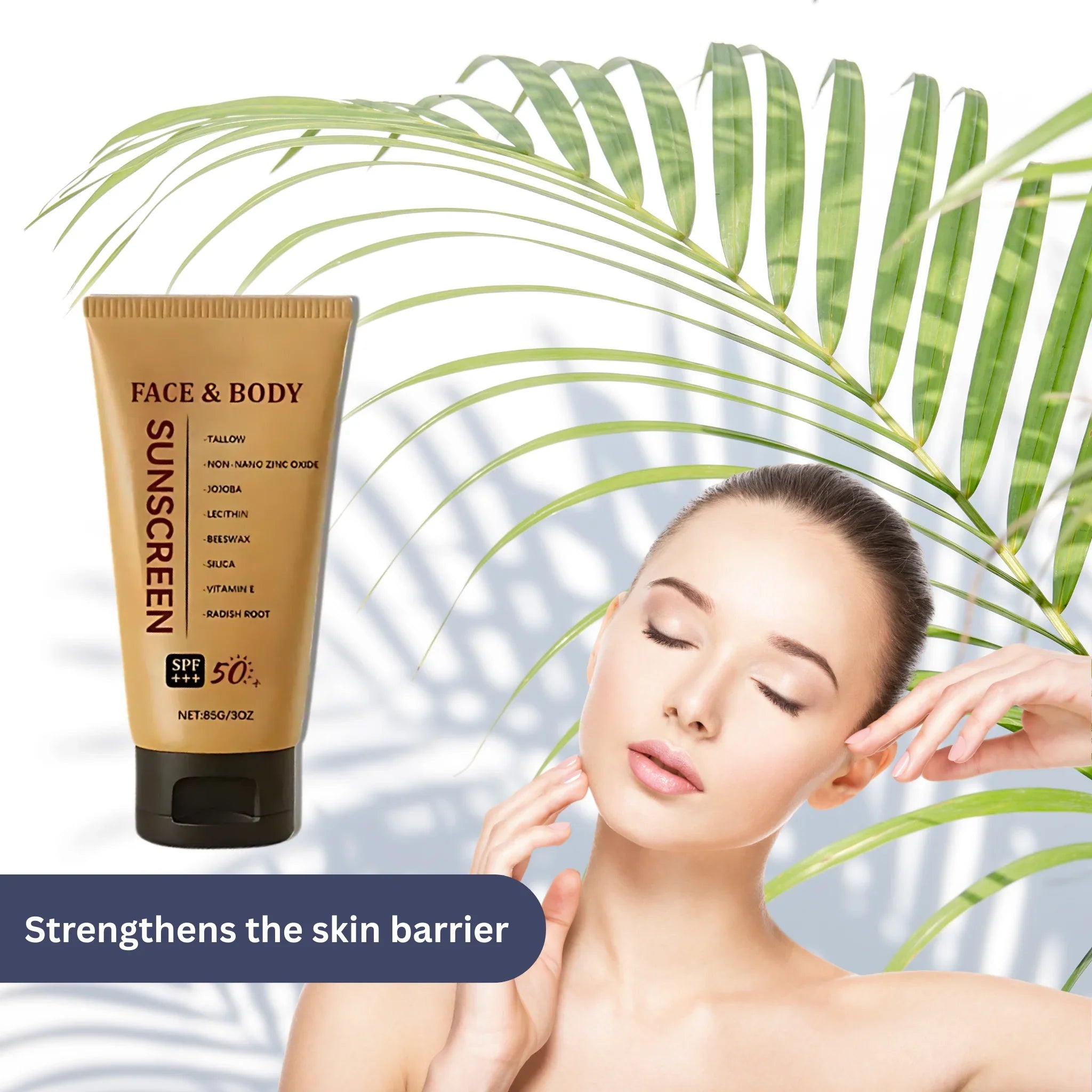The sunscreen is suitable for all skin types, including sensitive skin, children’s skin, and skin prone to redness.