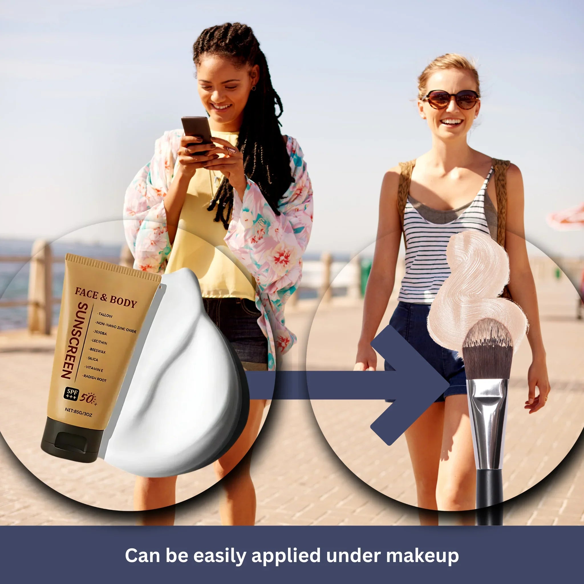 It can be easily applied under makeup and provides a smooth matte finish, ideal for city, beach, or outdoor activities.