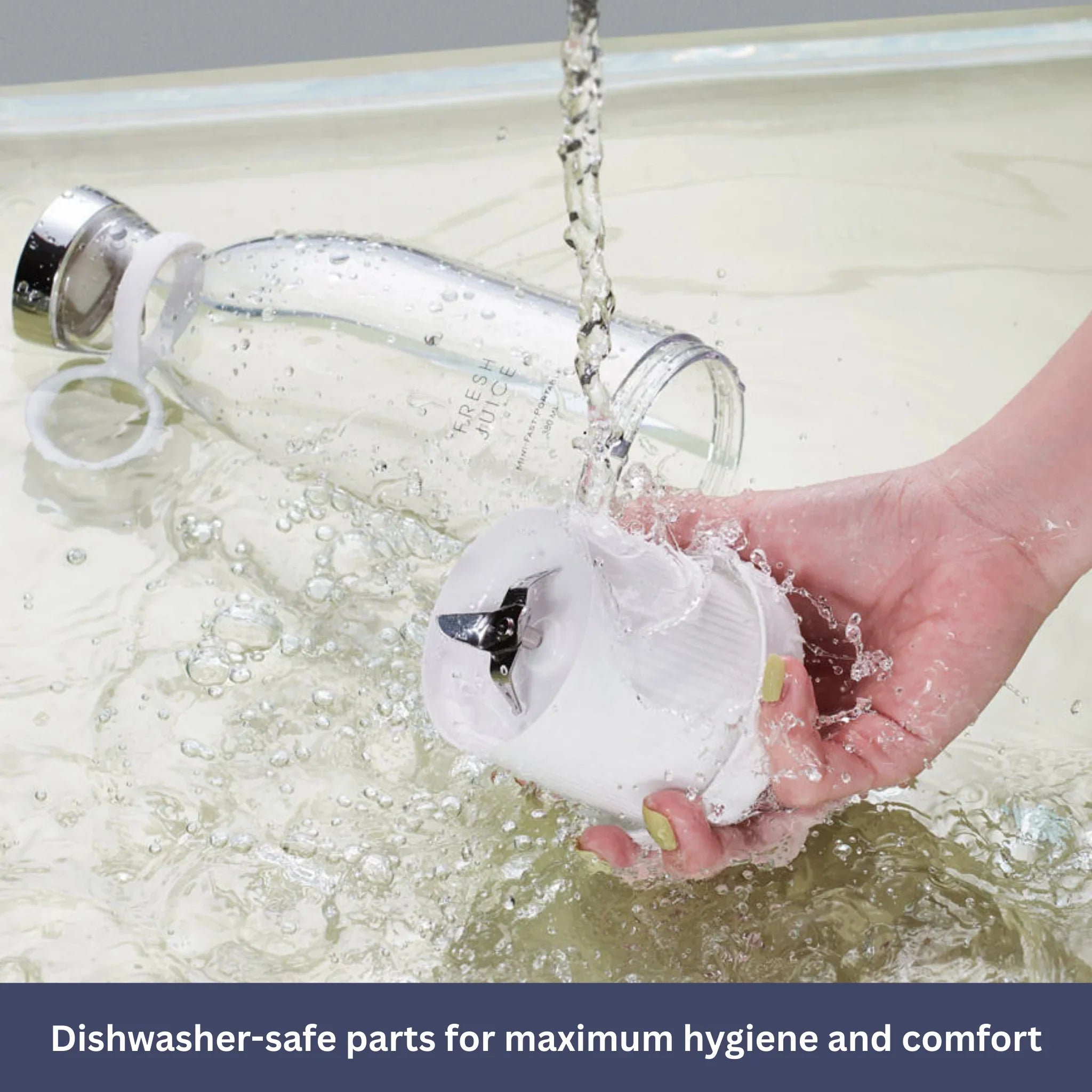 The built-in 1500 mAh battery can be easily charged wirelessly. Additionally, you can power the blender via USB, batteries, car power supply, or a traditional power outlet.