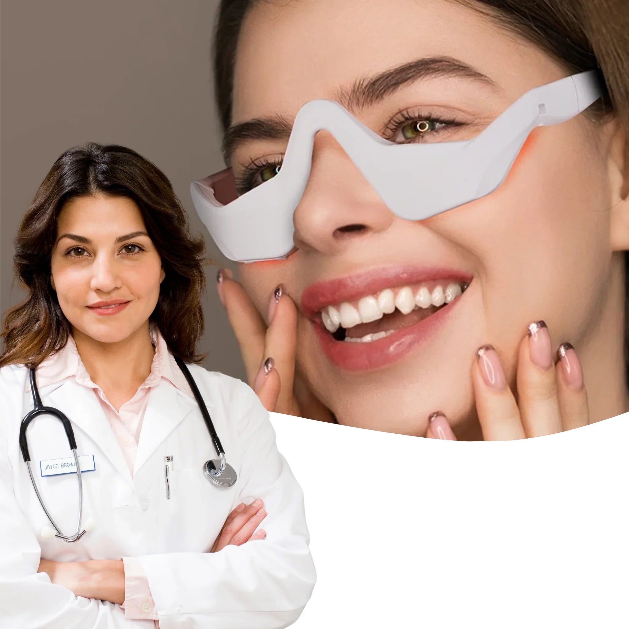 GlowEye combines Electrical Muscle Stimulation (EMS) and red light therapy to fight dark circles, puffiness, and fine lines.