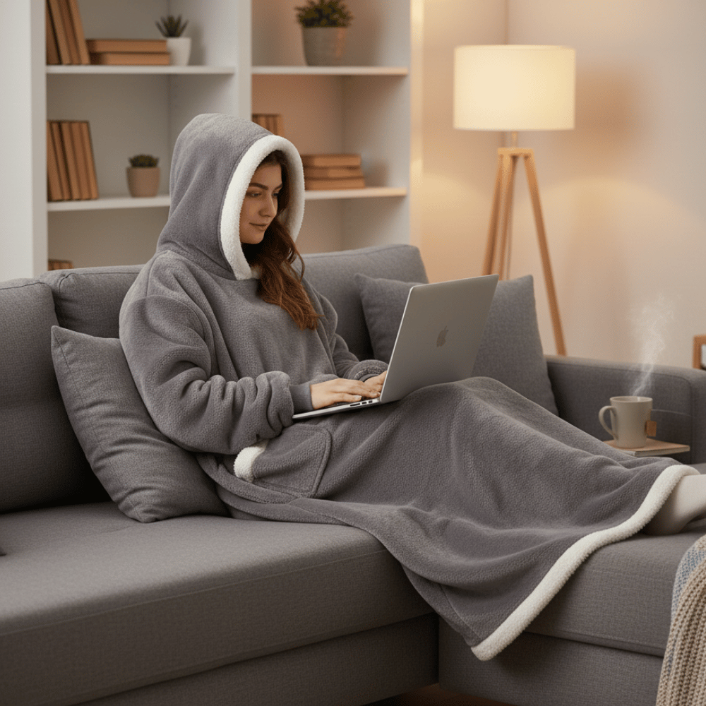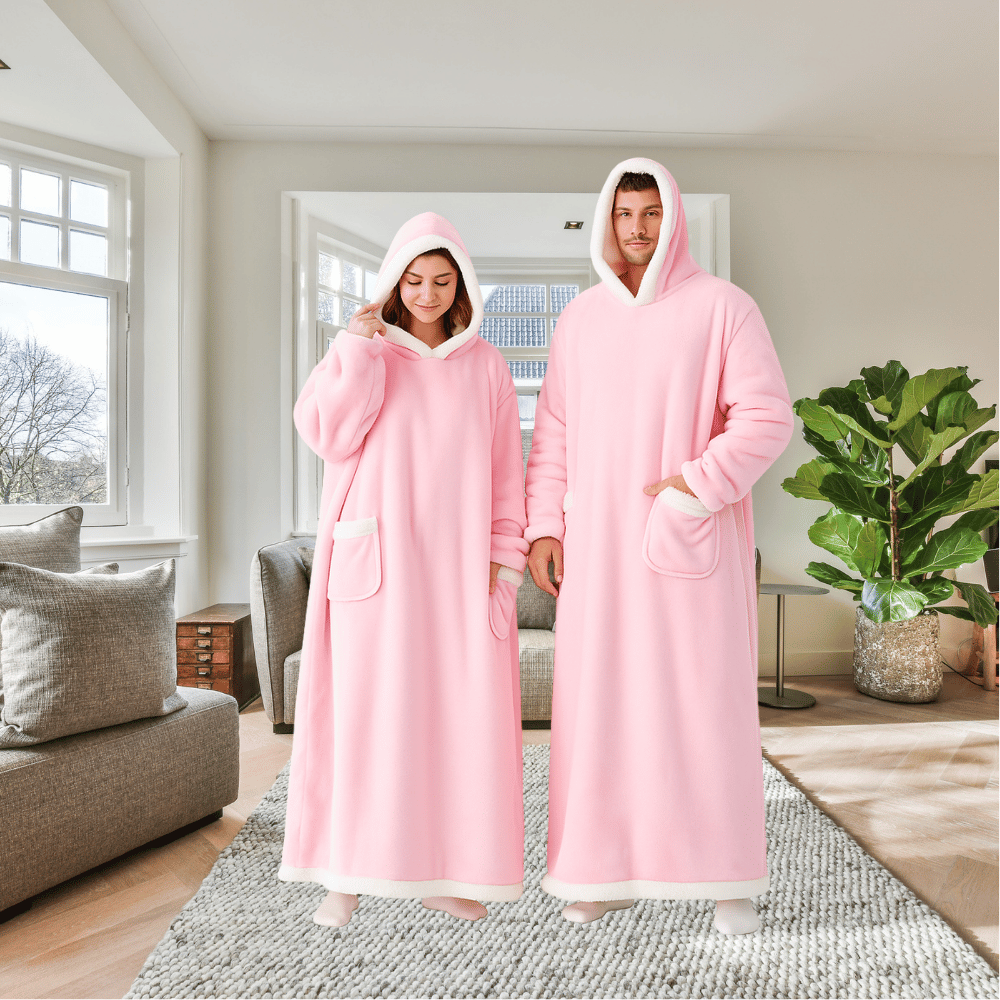 The hoodie blanket is available in two different lengths and designed as a unisex one-size-fits-all. Thanks to its generous cut, it offers a high level of comfort and fits women and men equally well.
