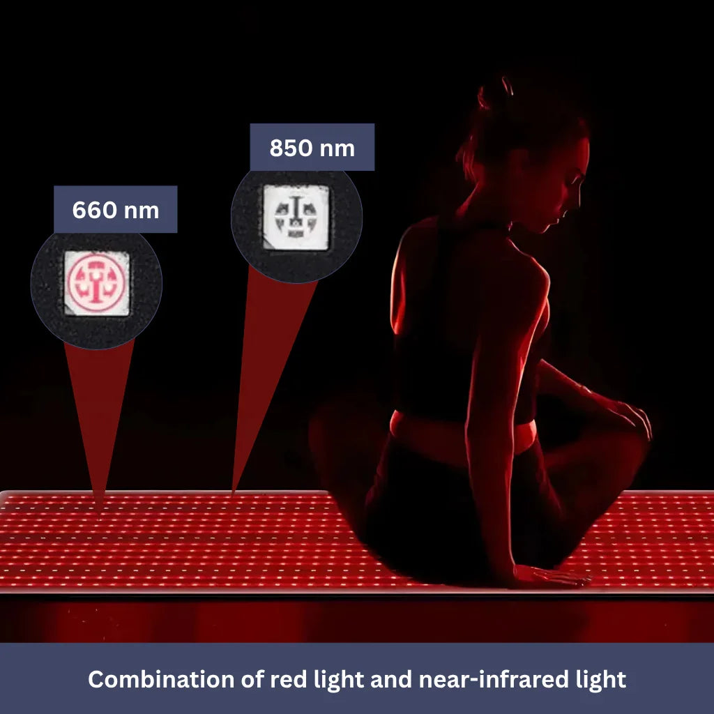 The InfraHeal Mat uses a combination of red light (660 nm) and near-infrared light (850 nm).