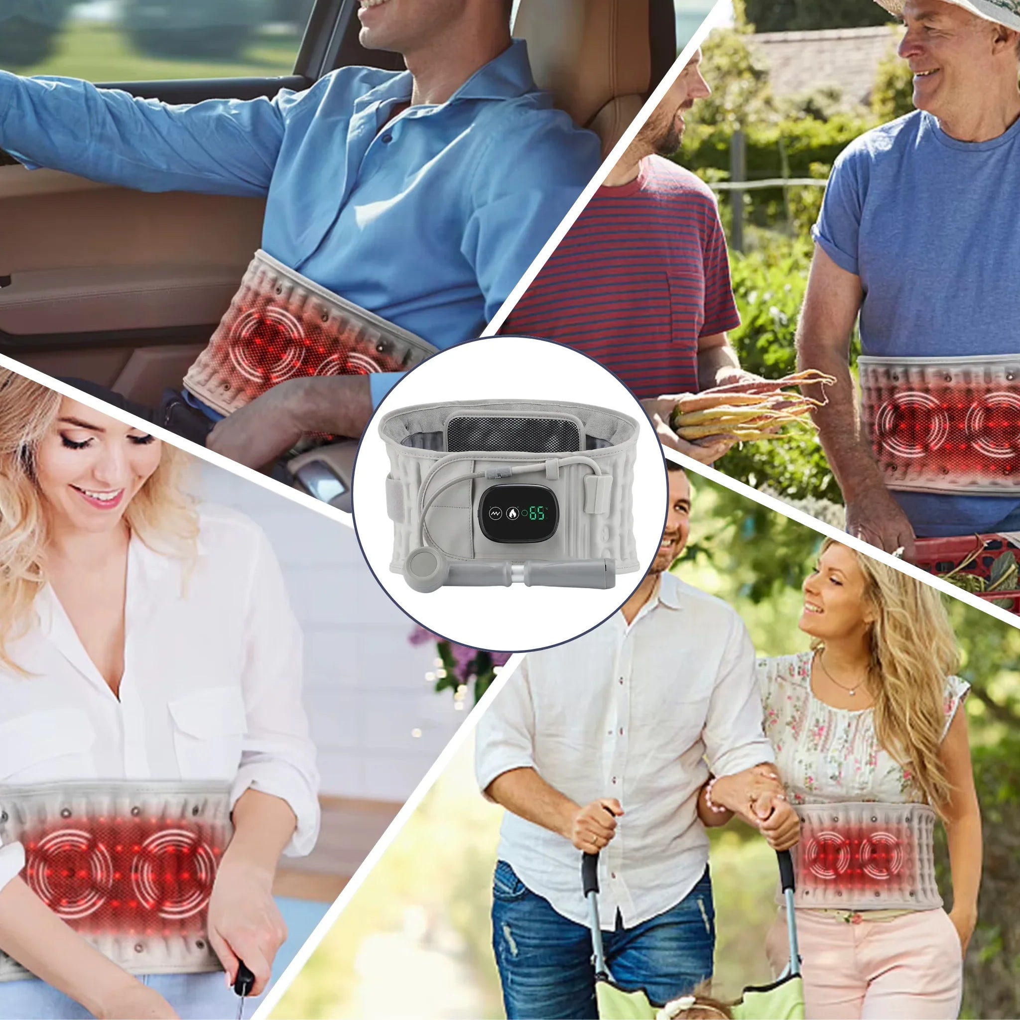 The LumbaraFit Belt delivers targeted relief through inflatable technology, heat, and massage.