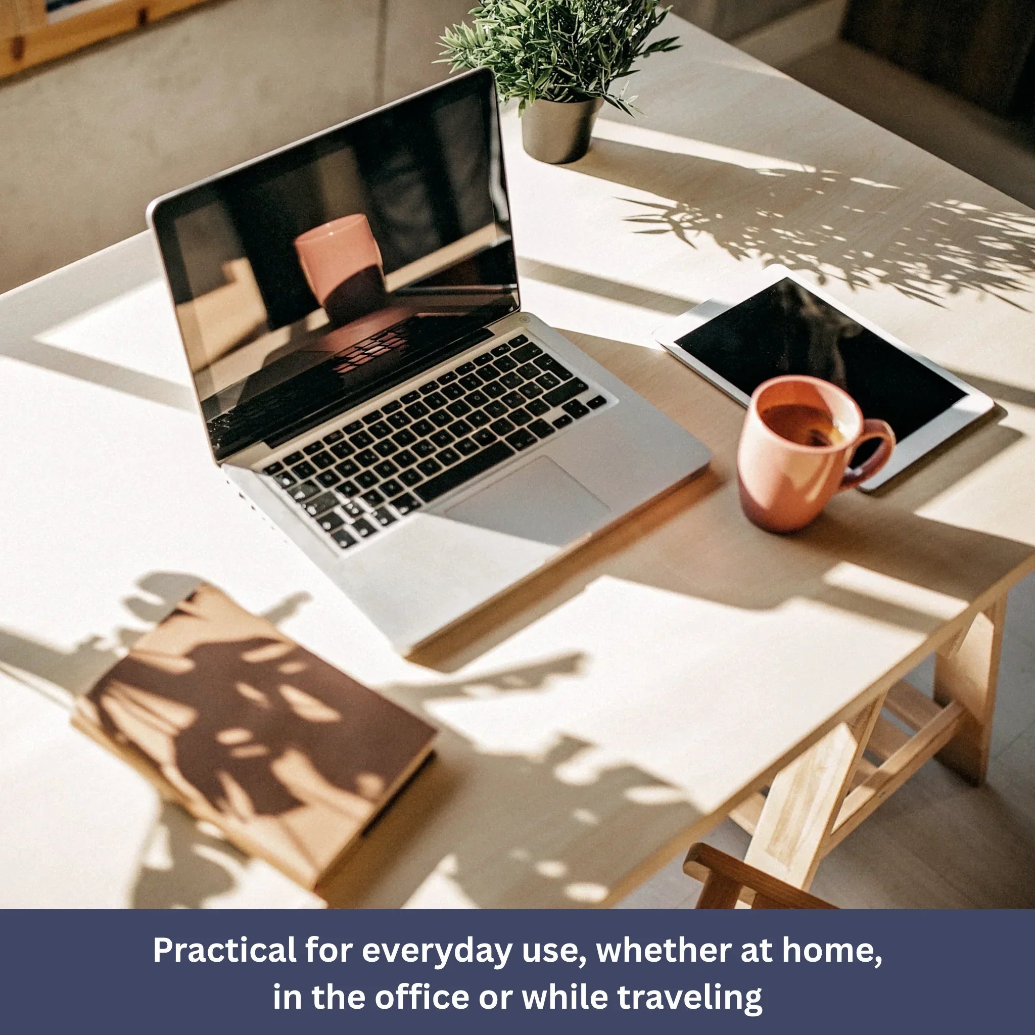 The device is easily charged via a USB cable, for example using a wall outlet, laptop, or power bank. A separate power adapter is not necessarily required.
