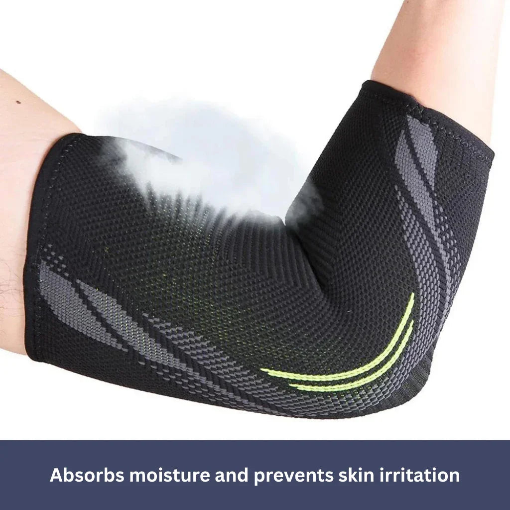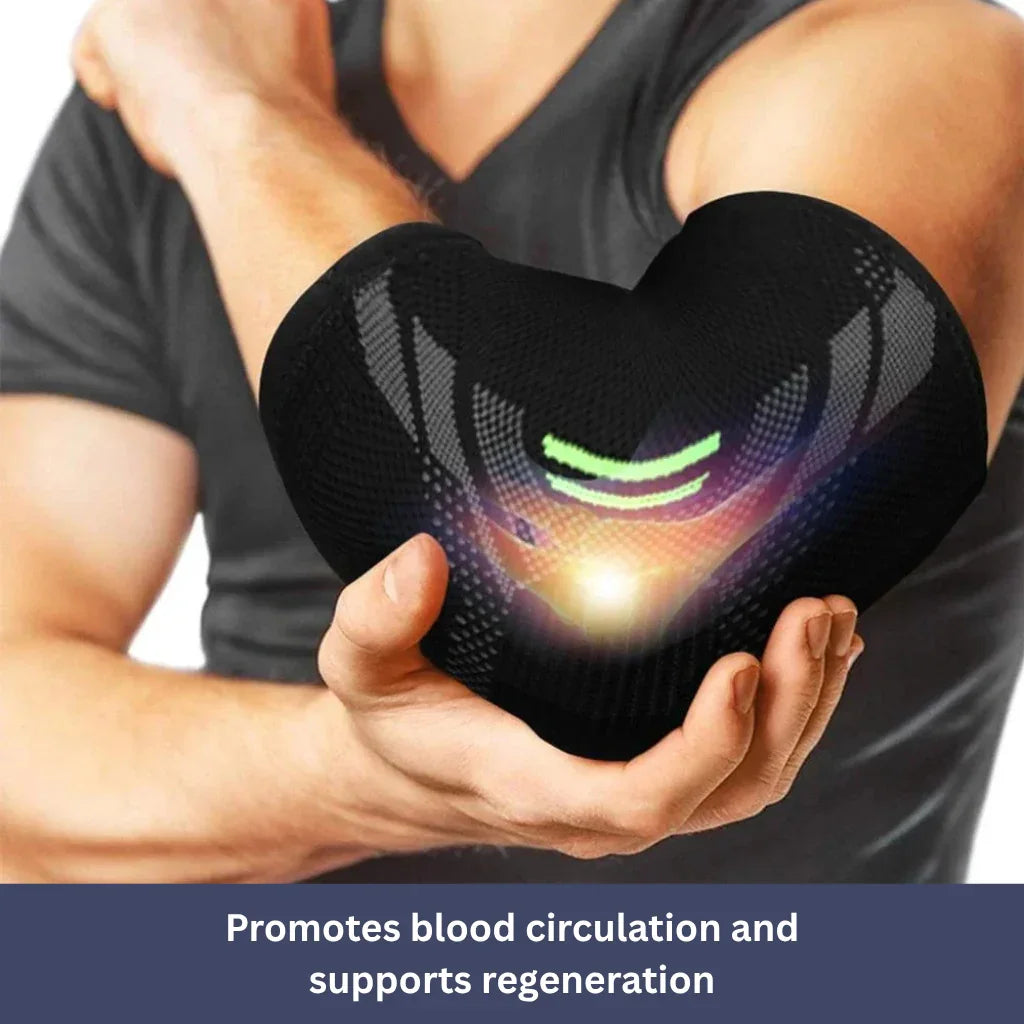 The brace applies gentle pressure to the elbow joint, promotes blood circulation, and supports regeneration.