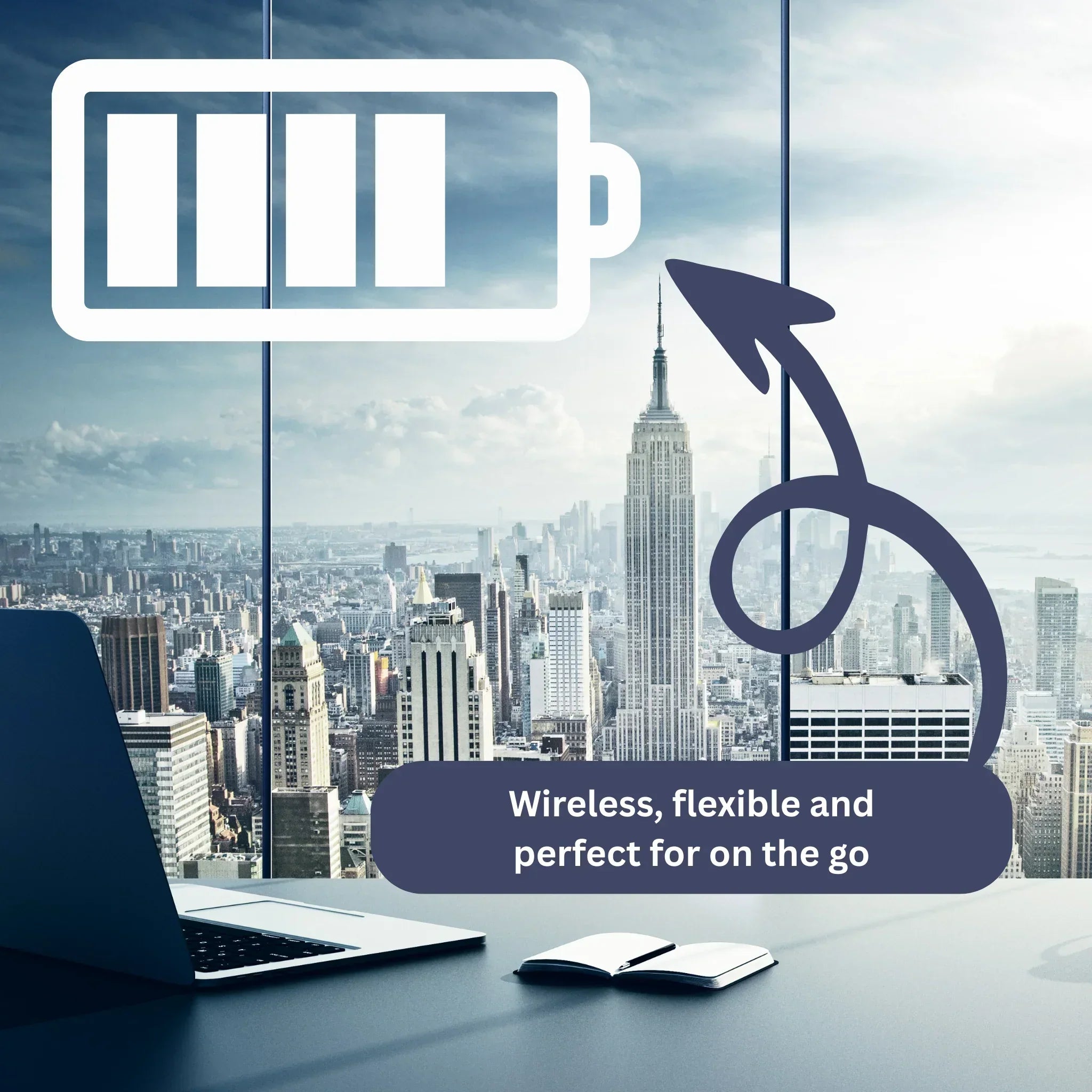 Ideal for use on the go, at the office, or at home when no power outlet is nearby.