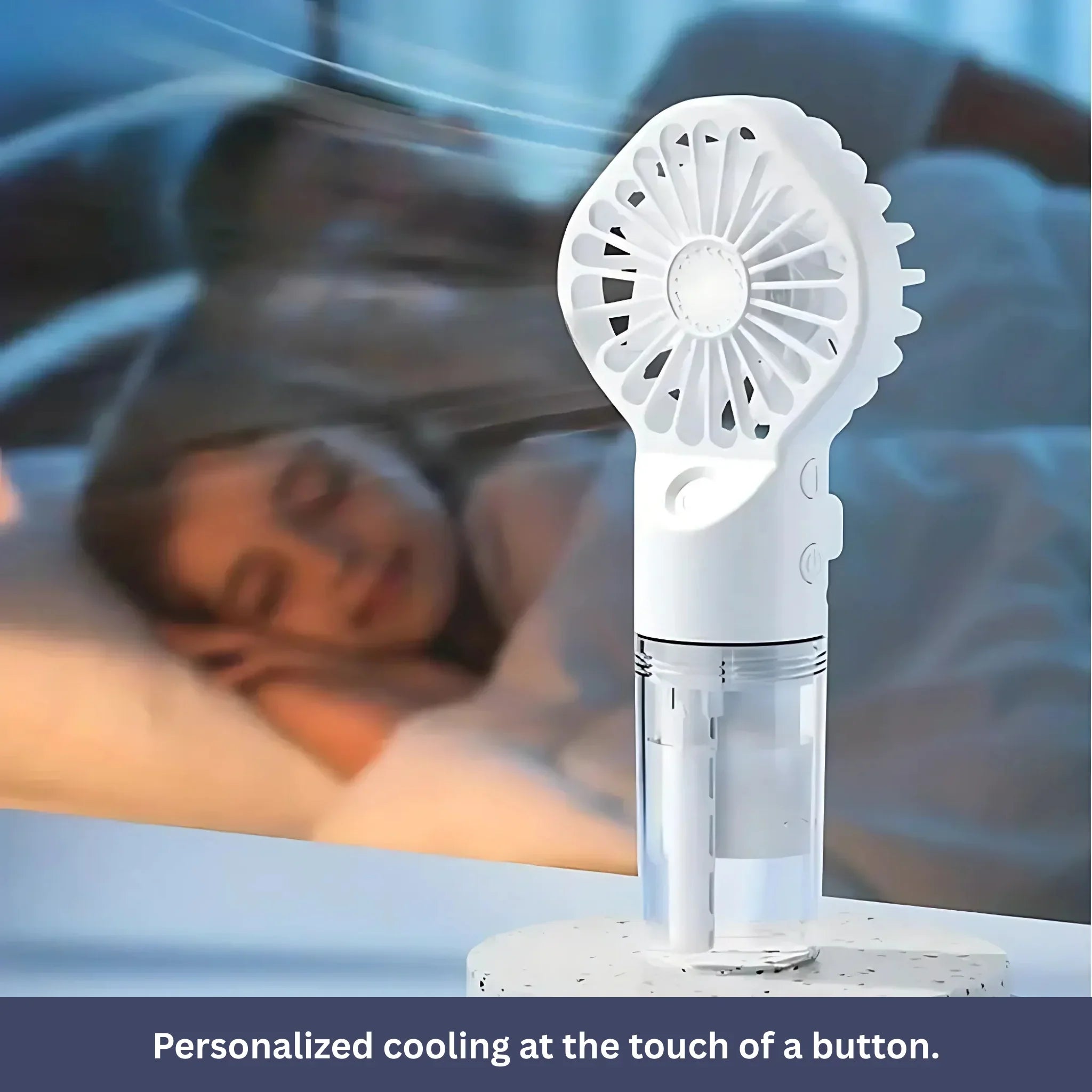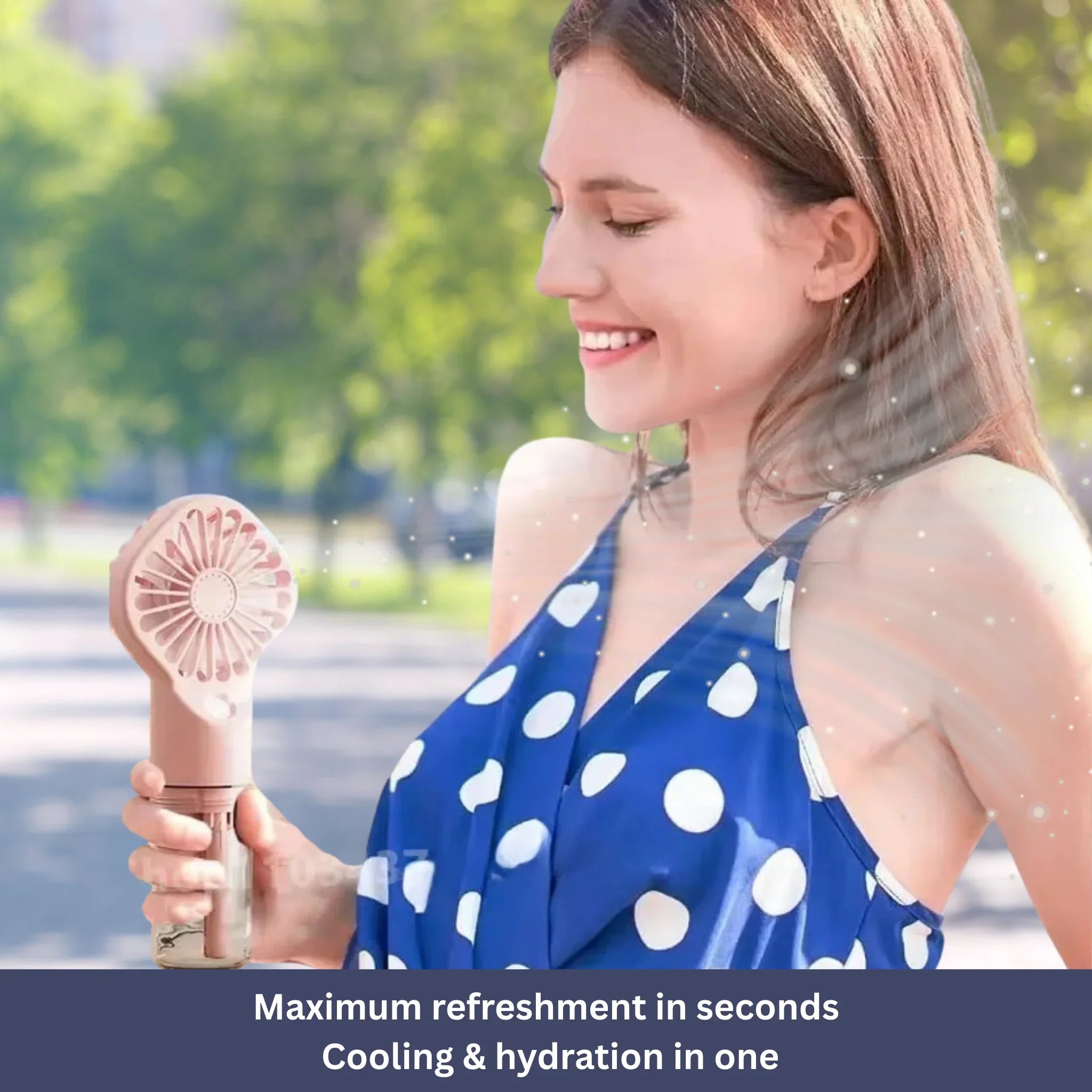 This mini fan combines the power of a cooling airflow with a fine water mist for instant refreshment. The built-in nano spray function provides moisture in dry air, leaving your skin pleasantly cool and hydrated.