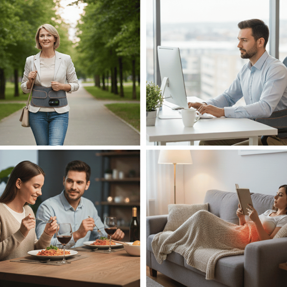 The ThermoFlex Pro helps you relieve back pain naturally – completely without pills. The combination of deep heat, red light therapy, and gentle massage loosens tense muscles, improves blood circulation, and noticeably relieves your lower back.