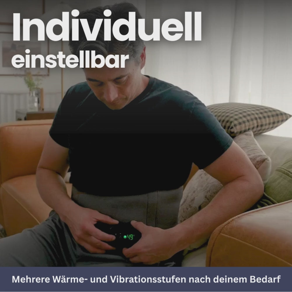 Place the belt around your lower back, fasten it comfortably, and switch it on using the touch panel. Then select your desired heat and vibration level.