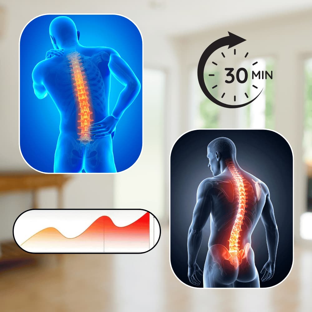 Regular use of approximately 30 minutes per day can help significantly reduce stiffness, pain, and muscle tension.