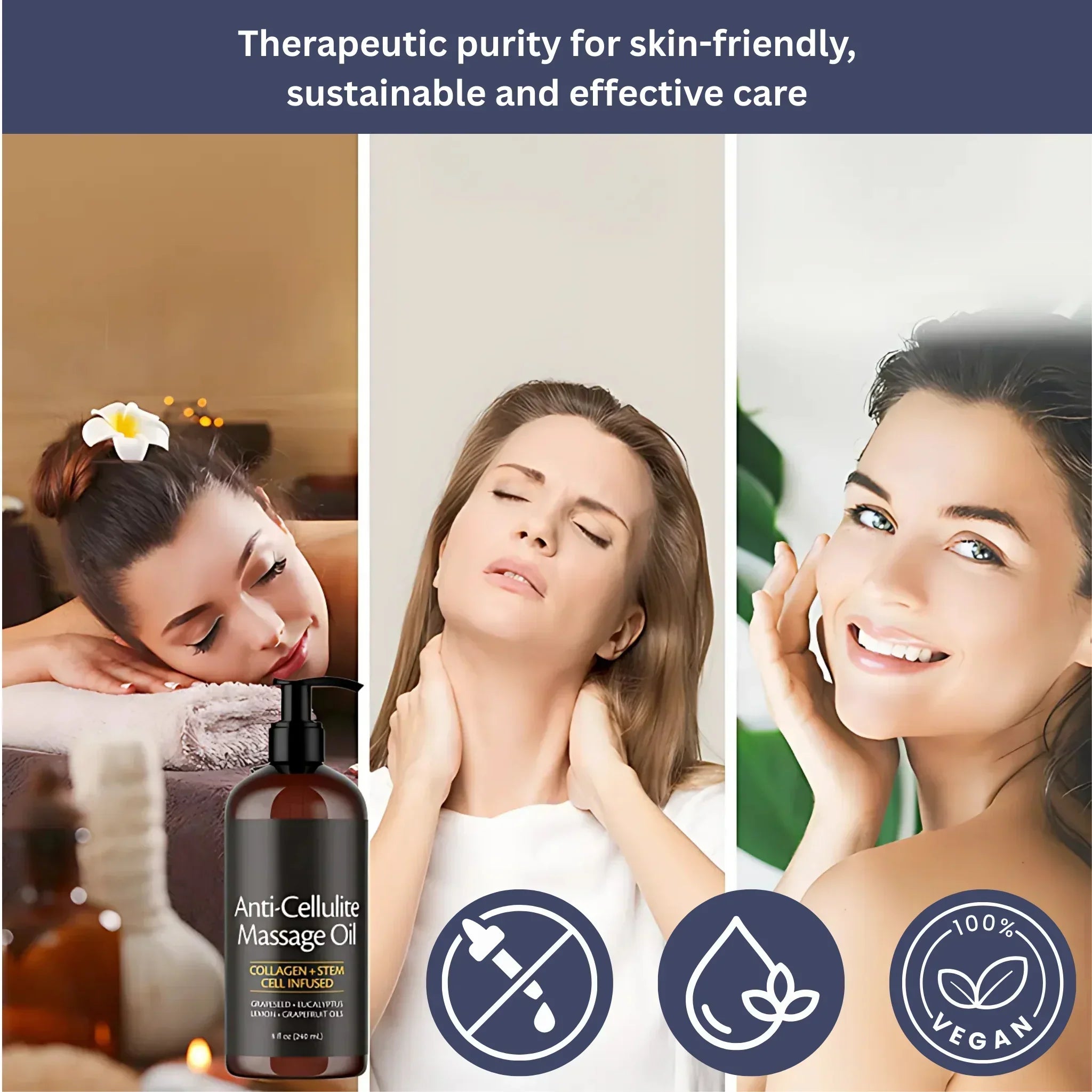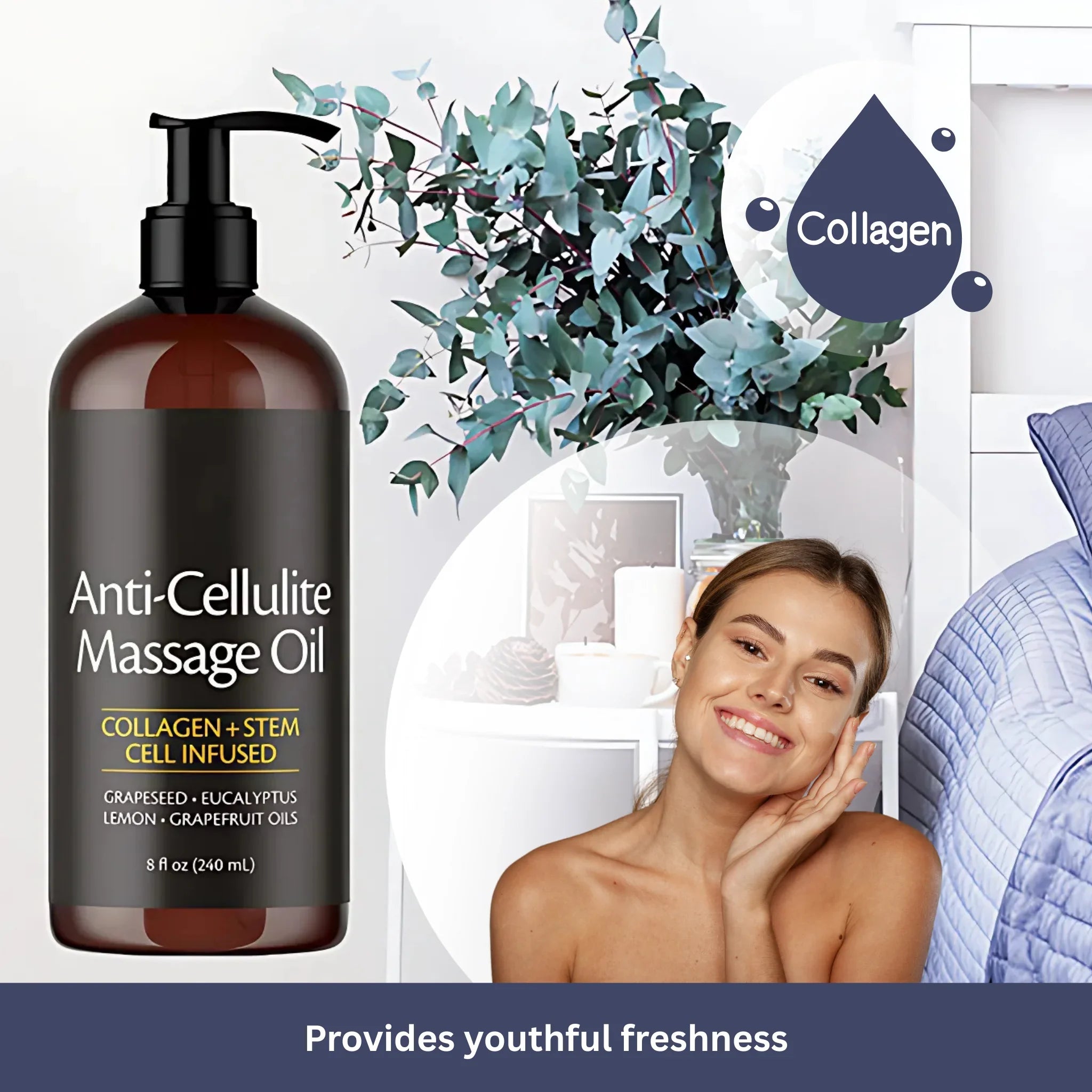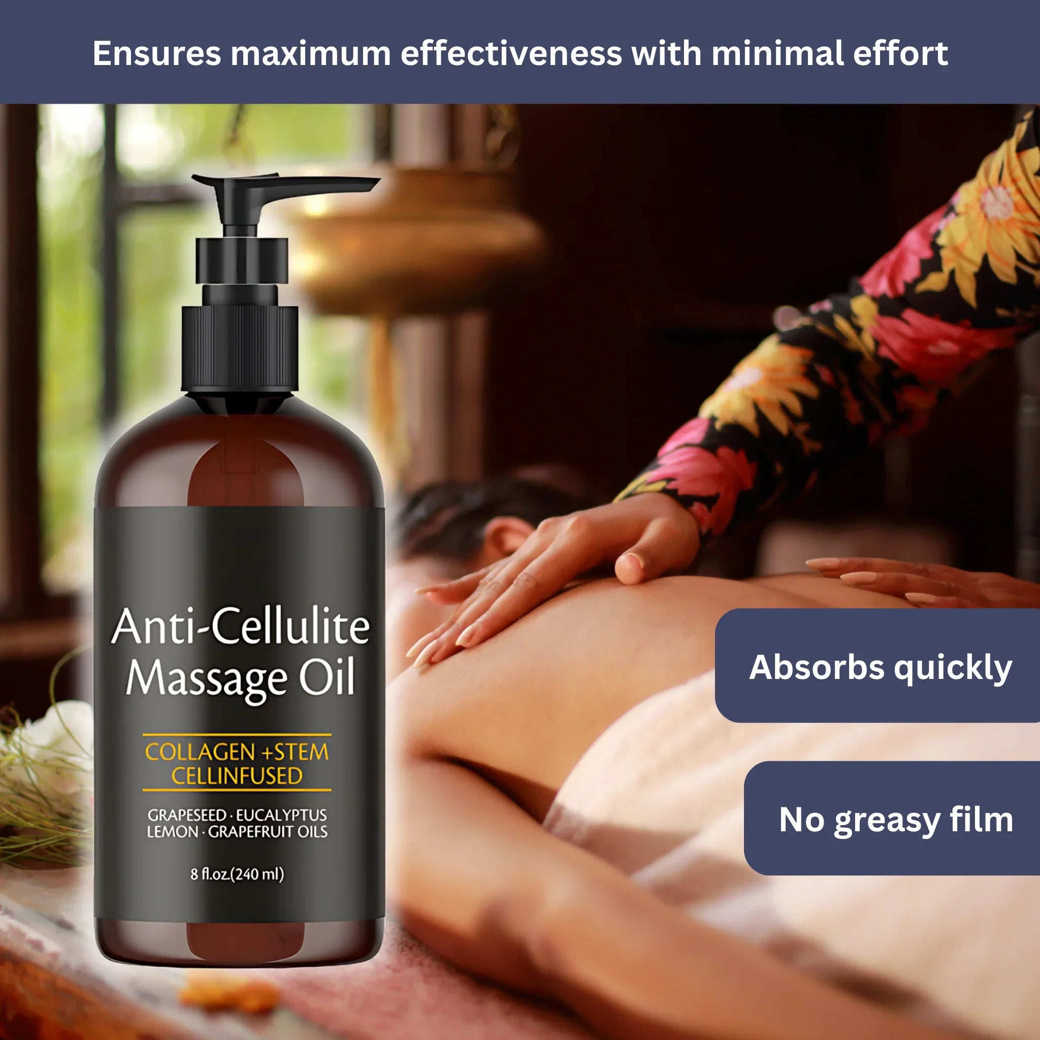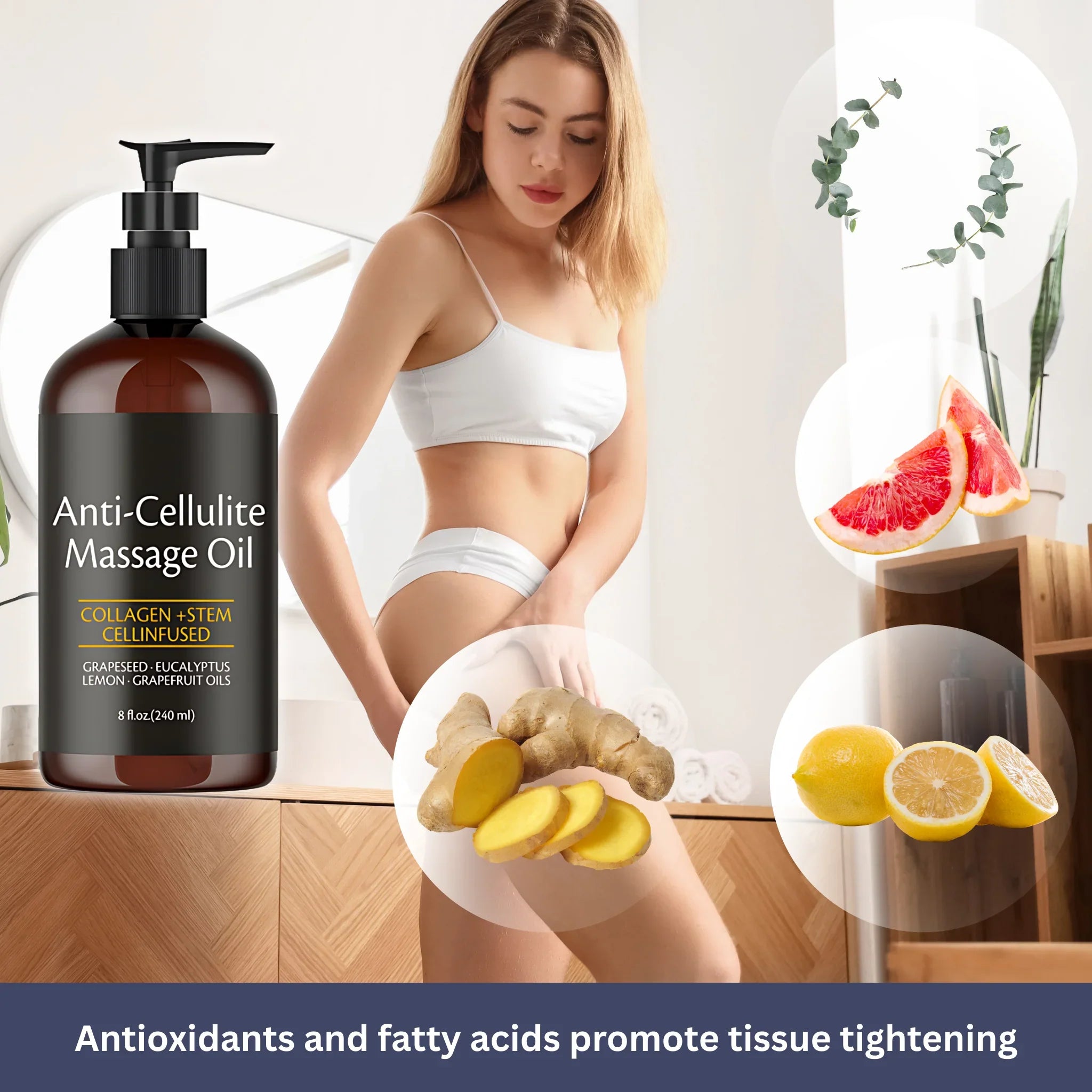 High-quality essential oils from lemon, eucalyptus, and grapefruit target cellulite on the hips, abdomen, thighs, and buttocks.