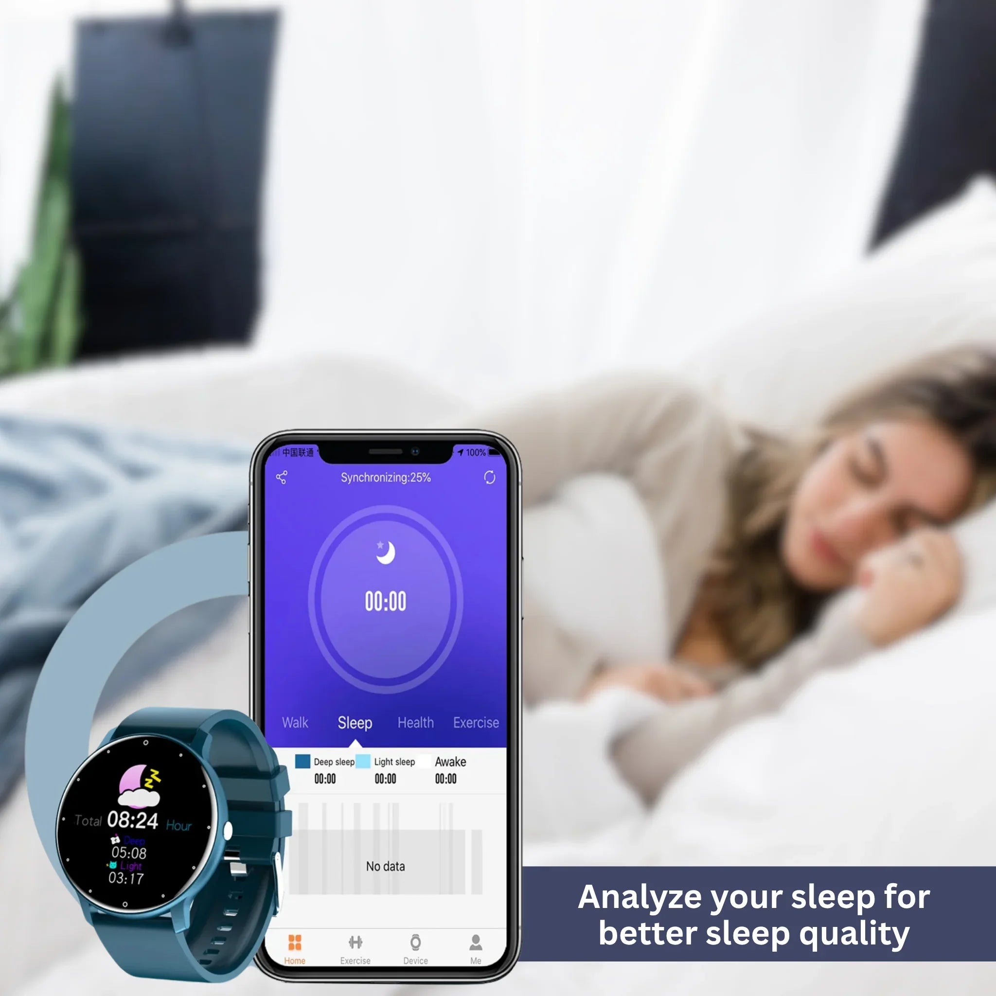 The built-in sleep monitor analyzes your sleep quality, while the activity tracker motivates you to stay active.