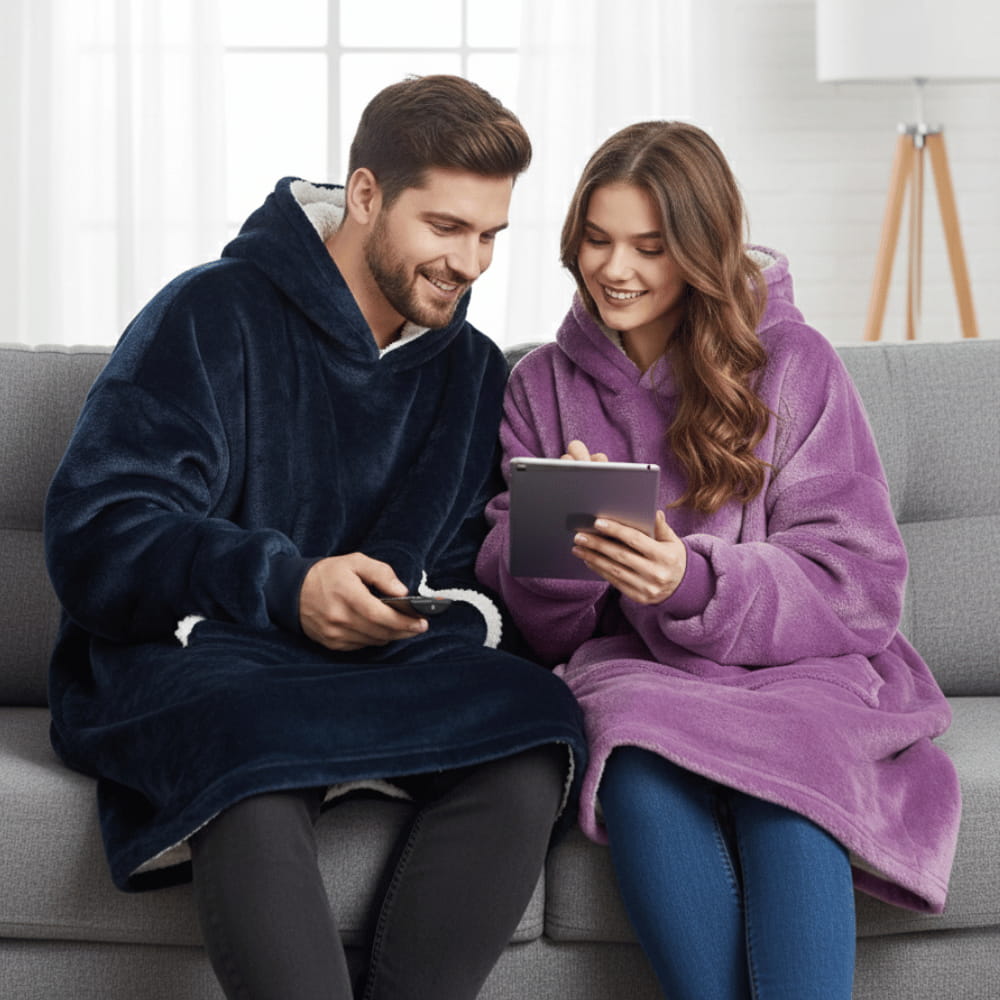 The combination of hoodie, blanket, and oversized sweatshirt creates a uniquely snug wearing experience. The soft, fleece-lined material fully wraps the body and provides instant warmth.